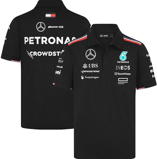 Leve a sua paixão pela Fórmula 1 e pela equipa Mercedes AMG Petronas da pista para a rua e de volta com a coleção oficial de vestuário réplica de 2024. O polo clássico está de volta, realçado com o estilo essencial da F1. O emblema da Mercedes e o logótipo da Petronas são apresentados no peito, juntamente com os logótipos dos patrocinadores, que também adornam as costas e as mangas. Uma carcela coberta e um colarinho polo criam a silhueta icónica que é sinónimo do estilo da Fórmula 1, enquanto os detalhes coloridos nos ombros e punhos das mangas completam o visual.