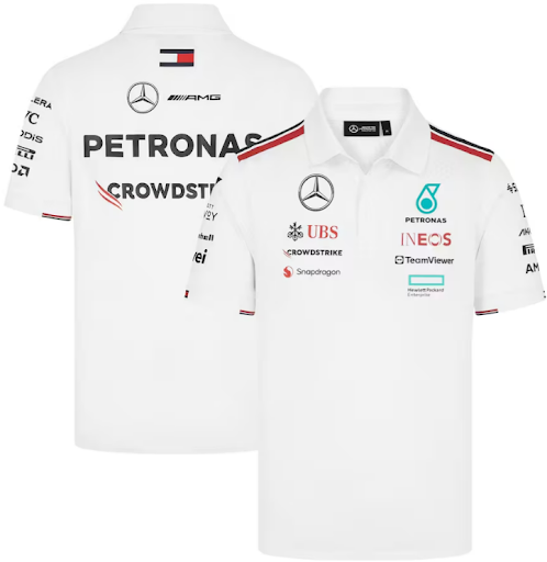 Leve a sua paixão pela Fórmula 1 e pela equipa Mercedes AMG Petronas da pista para a rua e de volta com a coleção oficial de vestuário réplica de 2024. O polo clássico está de volta, realçado com o estilo essencial da F1. O emblema da Mercedes e o logótipo da Petronas são apresentados no peito, juntamente com os logótipos dos patrocinadores, que também adornam as costas e as mangas. Uma carcela coberta e um colarinho polo criam a silhueta icónica que é sinônimo do estilo da Fórmula 1, enquanto os detalhes coloridos nos ombros e punhos das mangas completam o visual